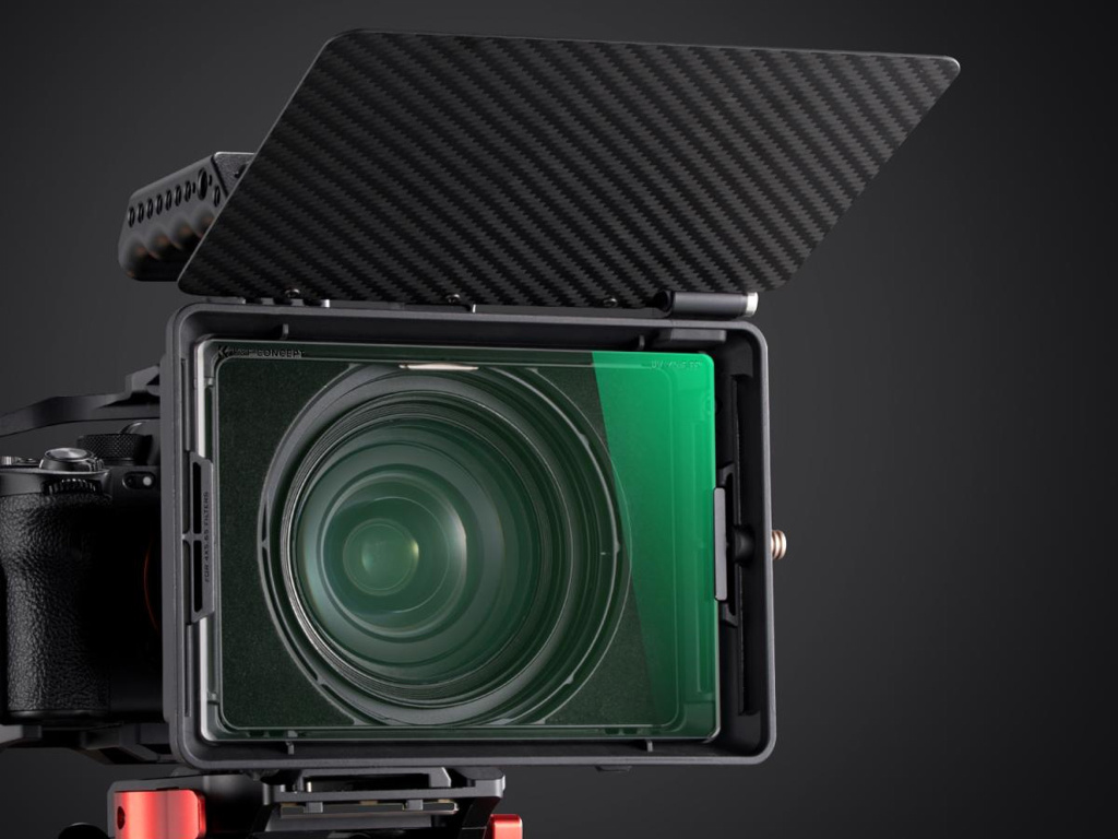 Lekki matte box z włókna węglowego zapobiega niepożądanemu światłu i obsługuje dwa filtry 4x5.65". Kompatybilny z obiektywami (67-95mm), zawiera filtr Black Mist 1/4 z trwałą...