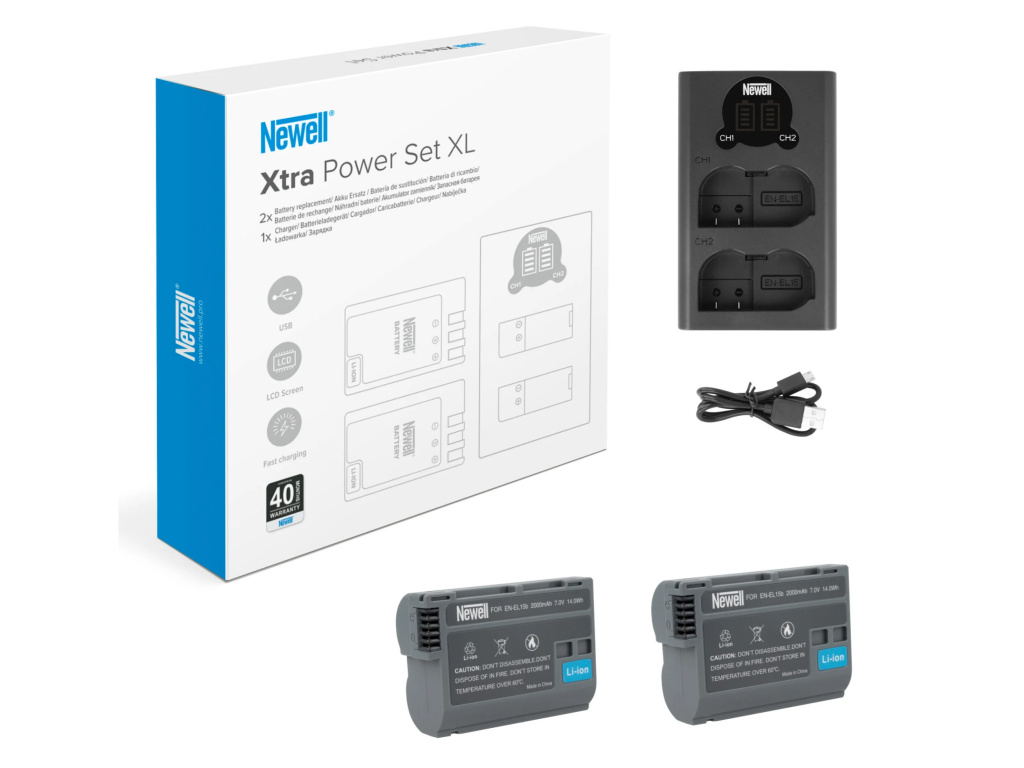 Zestaw zawierający dwukanałową ładowarkę Newell DL-USB-C i akumulator EN-EL15b to wszystko, czego potrzebujesz, aby przygotować aparat na długie godziny pracy. Wszędzie tam, gdzie dostęp do sieci jest ograniczony, można użyć portu USB do ładowania ogniw za pomocą laptopa, powerbanku lub ładowarki do smartfona. Znajdziesz tu dwa zamienniki akumulatora EN-EL15b, który wykorzystuje najwyższej jakości ogniwa i inteligentny system regulujący proces ładowania. Nie musisz tracić czasu na szukanie baterii kompatybilnych z ładowarką. To, czego potrzebujesz, znajdziesz w jednym pudełku.