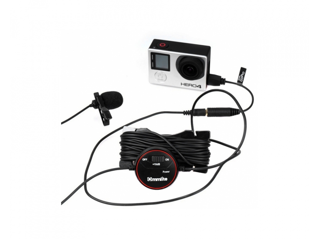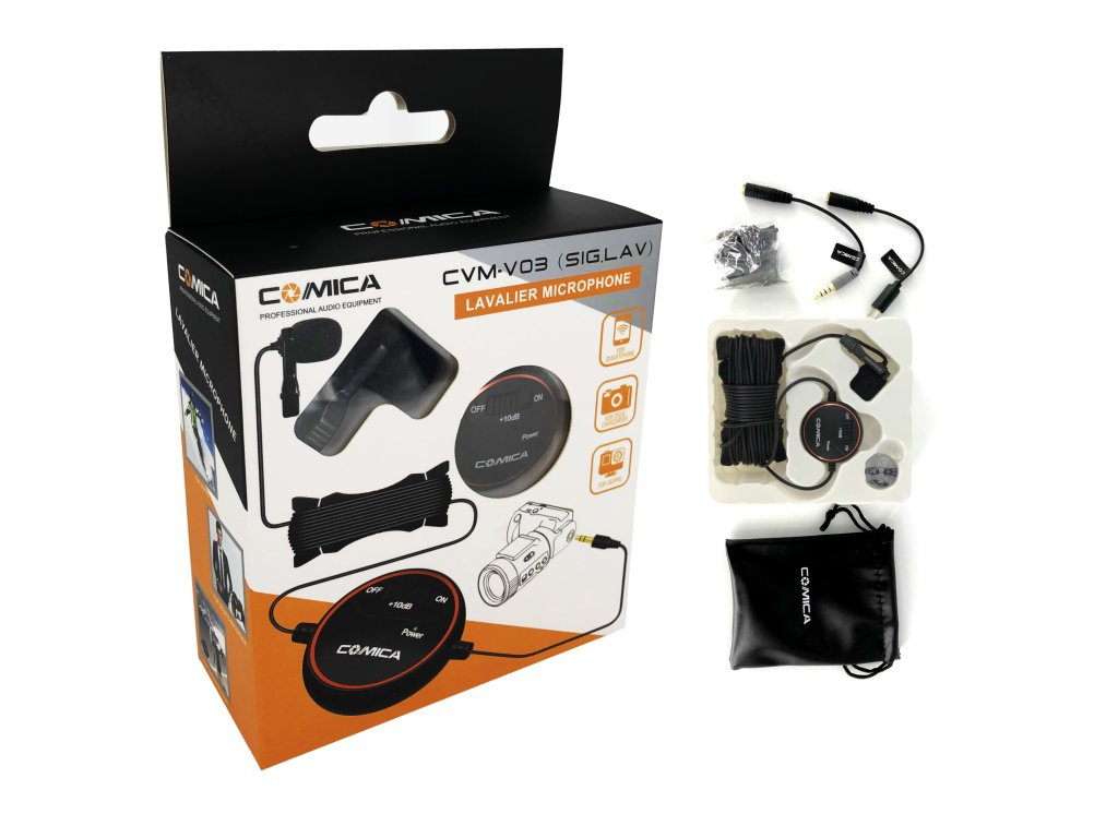 Comica Audio CVM-V03GP to wysokiej jakości mikrofon "krawatowy" ze wzmacniaczem, odpowiedni do GoPro HERo 4/3+/3 i urządzeń ze złączem mini-jack 3,5mm. Mikrofon można podłączyć do kamery za pomocą stosunkowo długiego kabla, który znajduje się w tym opakowaniu. CVM-V03GP znacznie poprawia jakość dźwięku nagrywanego przez kamerę, odpowiedni podczas rozmów lub koncertów.