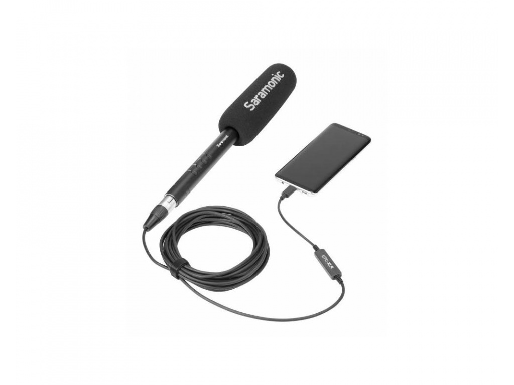 Z kablem UTC-XLR można używać dowolnego dynamicznego mikrofonu XLR. Można również używać mikrofonów pojemnościowych. Wystarczy mieć własne źródło zasilania, takie jak mikrofon typu shotgun Saramonic SR-TM1 (sprzedawany oddzielnie). Złącze XLR (żeńskie) na kablu jest wyposażone w mechanizm blokujący, który zapobiega przypadkowemu odłączeniu mikrofonu, oraz kabel o długości 6 metrów, który zapewnia wystarczającą odległość do pracy.