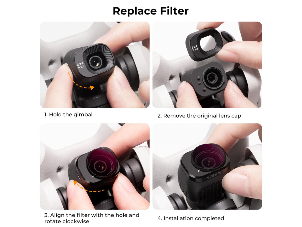 Speciálně navržený precizní montážní systém umožňuje snadnou a bezpečnou instalaci. Filtry přesně padnou na objektiv DJI Mini 4 Pro a drží pevně na místě i při dynamických manévrech během letu.