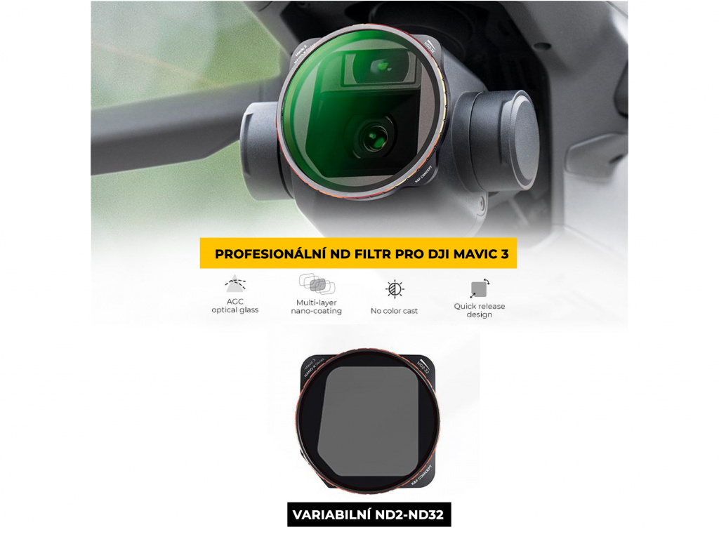 Variabilní ND2-32 filtr DJI Mavic 3 (1-5 stop ztmavení) Profesionální Nano-X řada filtrů