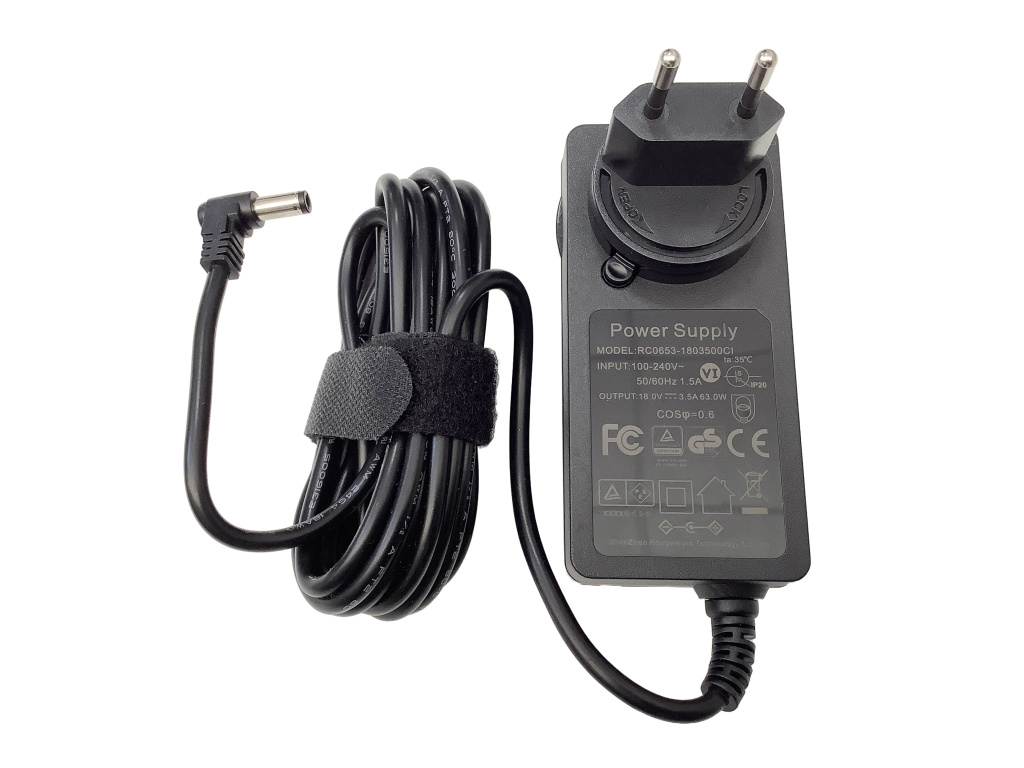 Síťový adaptér 18V 3.5A 63W konektor 5.5mm x 2.1mm Náhradní adaptér nejen pro VL-D640T, VL-40T, VL-D60T, VL-S50T