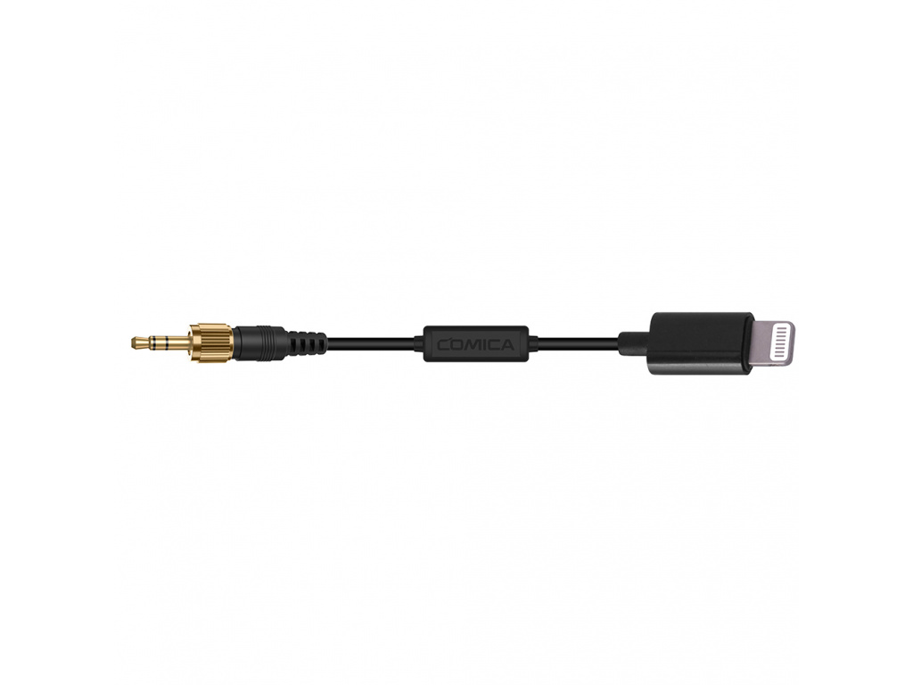 Pozlacený kabel, adaptér s 3,5 mm samcem na jedné straně a Lightningem na straně druhé. Tato varianta konkrétně slouží pro pohodlné připojení bezdrátových mikroportů typu Comica CVM-WM100 / 100 Plus / 200 / 300 k zařízení Iphone (Apple). Dříve se to muselo řešit přes tuto a tuto redukci. Nyní jsou obě redukce obsaženy v tomto kabelu.