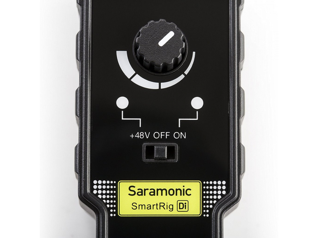 Saramonic SmartRig Di poskytuje phantomové napájení 48V pro profesionální kondenzátorové mikrofony a obsahuje 3,5 mm výstup pro sluchátka pro monitorování zvuku v reálném čase. Velké kolečko pro ovládání gain usnadňuje nastavení přesné úrovně.