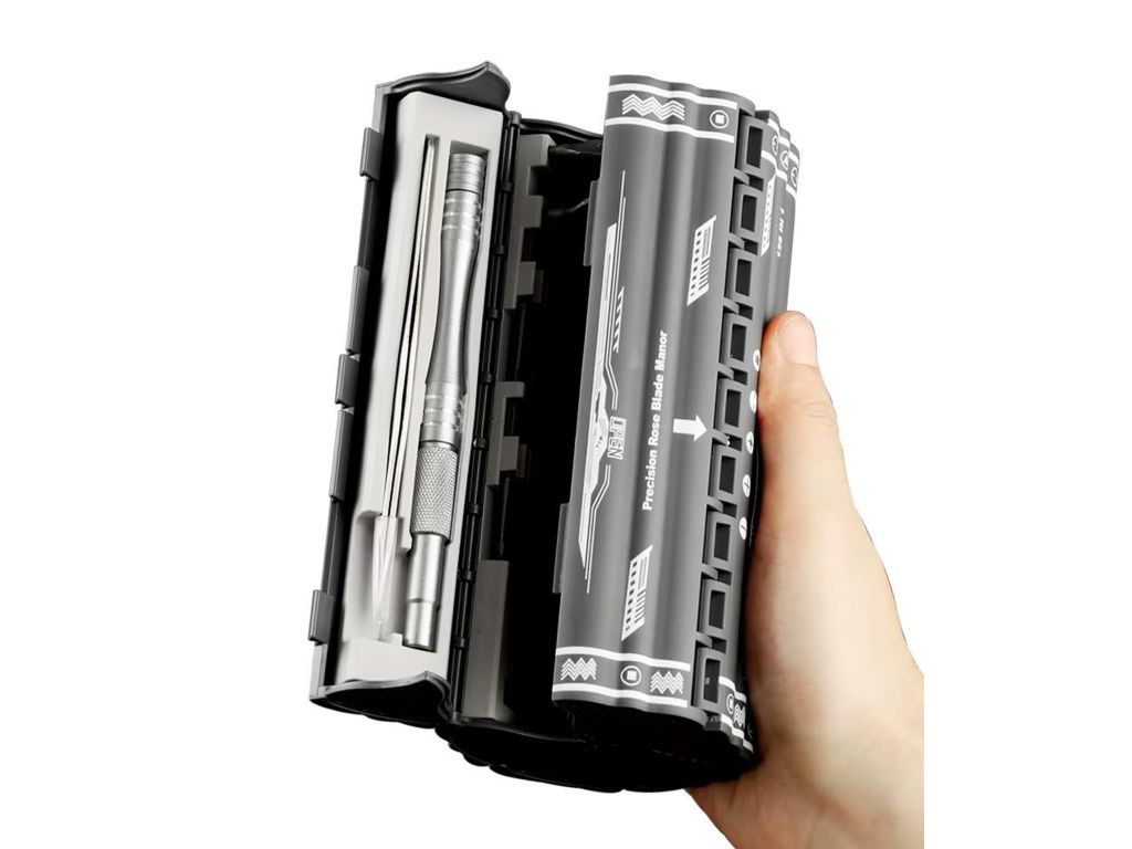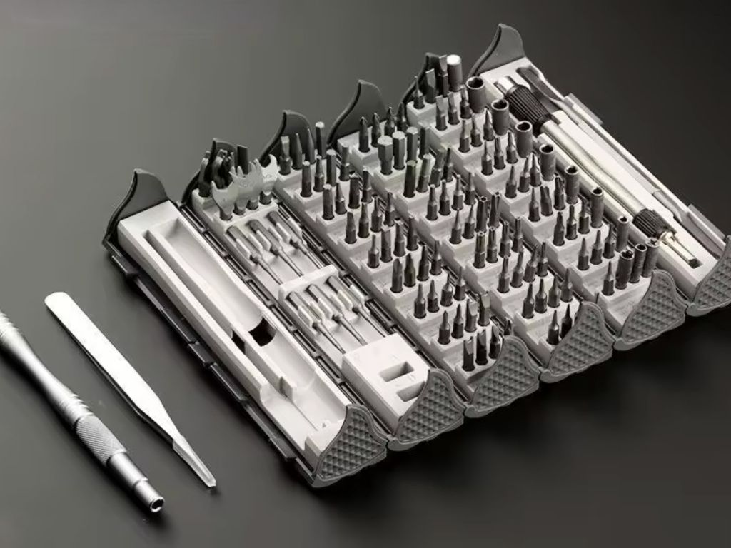 Praktická multifunkční sada šroubováků obsahuje 128 bitů pro široké spektrum oprav. |