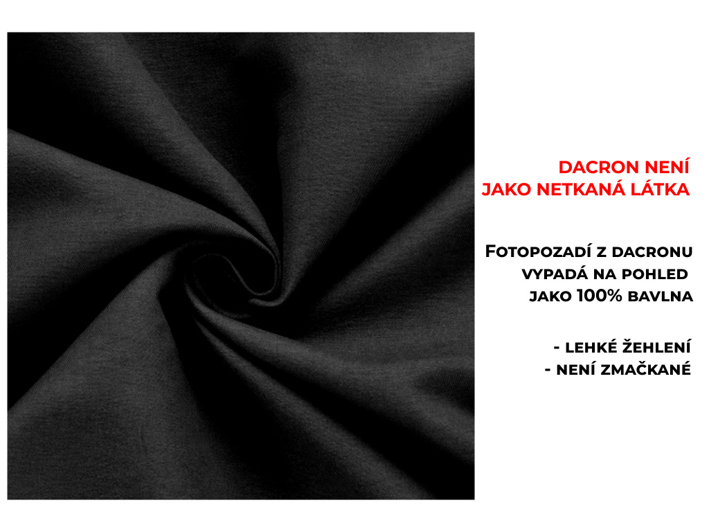 Čierne dakrónové plátno je veľmi podobné 100 % bavlne, ale je cenovo dostupnejšie, veľmi ľahko sa žehlí a ak nie ste profesionál v oblasti tkanín, ani nepoznáte rozdiel. Plátno je veľmi kvalitné.