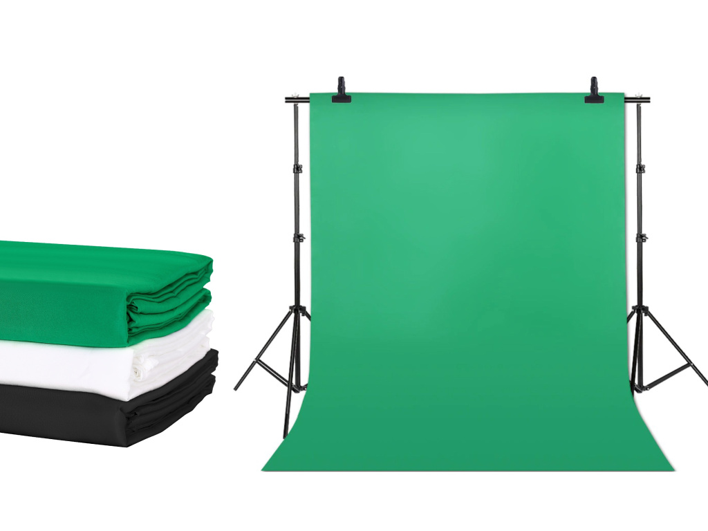 Výhodný set obsahuje 3 x fotografické pozadí 3 x 1,5 metry. Dále samotná konstrukce na fotopozadí (3 x 2 metry) - šířka x výška. Součástí jsou i dvě svorky pro pevné uchycení. Materiál fotografické plátna je Dacron. Není to tedy 100% bavlna, protože je set o tolik cenově výhodnější. Výhoda Dacronu je, že je levnější než bavlna, ale není to zkrátka 100% bavlna. V praxi byste zásadní rozdíl pocítit neměli, bavlna je příjemnější na dotek a vydrží v podstatě déle.