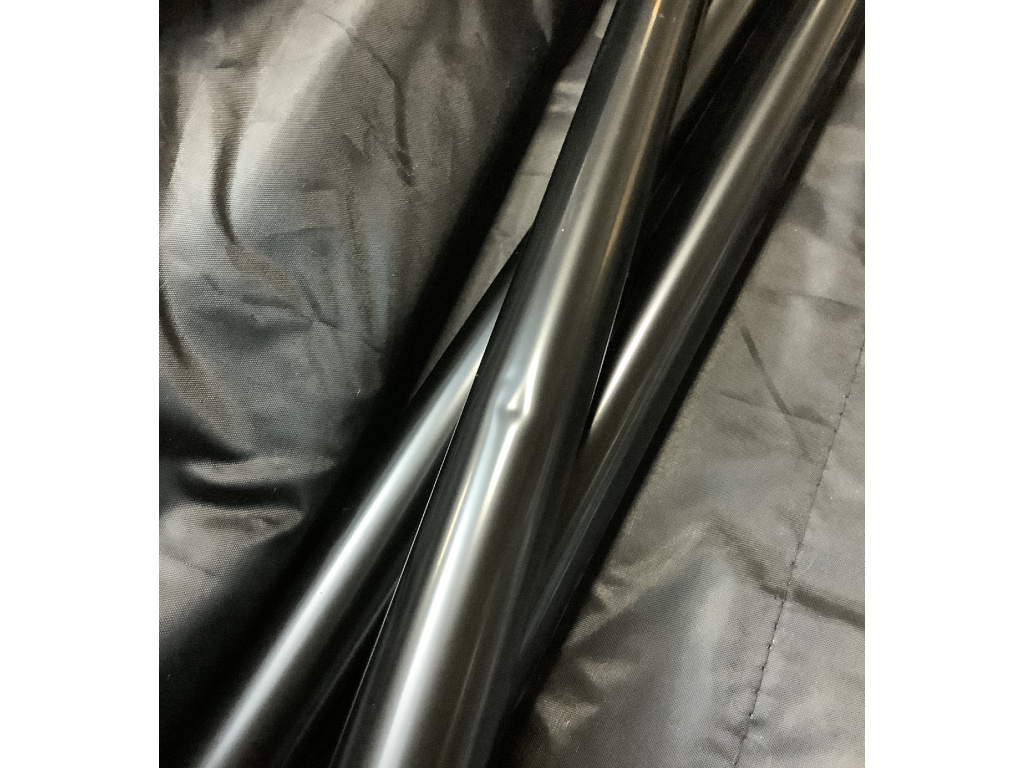 Rozbalený kus. Jedna tyč má malou promáčklinu a bílé plátno v balení bylo rozbaleno a mírně znečištěné (viz foto v galerii). Všechny ostatní součásti jsou nové. Standardní záruka.