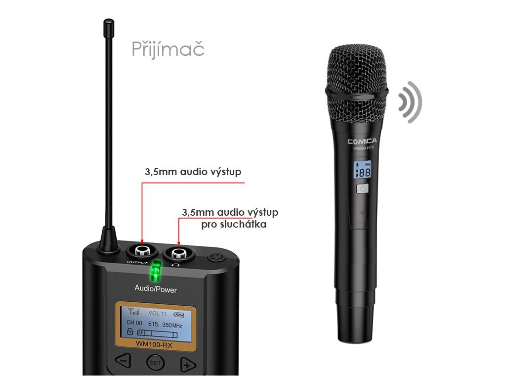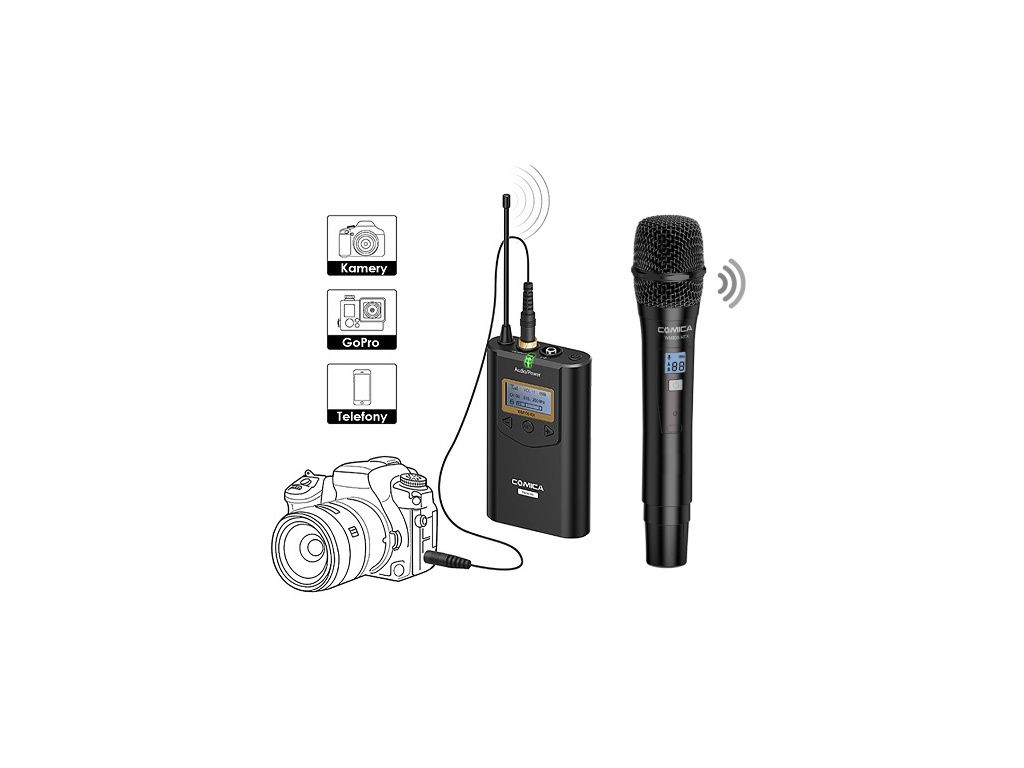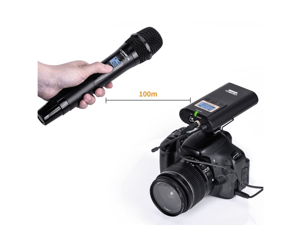 Univerzálny bezdrôtový audio systém Comica Audio CVM-WM100H využíva technológiu UHF, ktorá umožňuje prevádzku až v 48 kanáloch. K dispozícii je aj monitorovanie v reálnom čase, miestne testovanie zvuku a nastavenie hlasitosti.