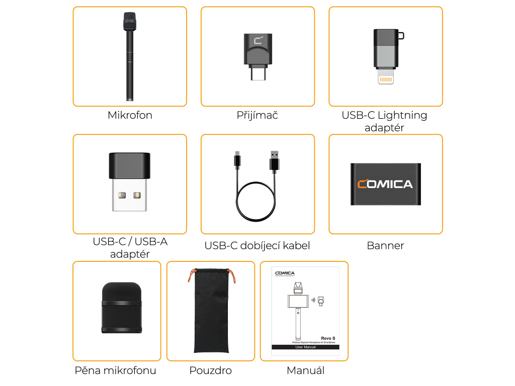 (ROZBALENO) Comica Revo S bezdrátový reportážní mikrofon pro smartphone, tablety, počítače