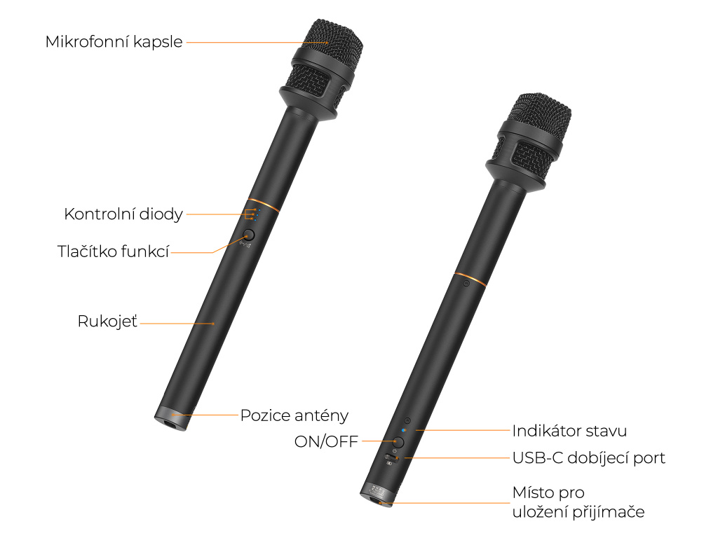| Čistá hmotnosť: | Telo mikrofónu: 107 g / RX: 2,6 g |