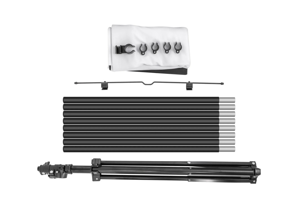 Plátno lze sestavit bez nářadí během několika minut. Stačí rozložit stativ, upevnit plátno a můžete promítat. Je ideální pro domácí použití, kancelář nebo venkovní promítání.