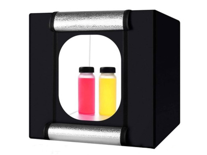 Fotografický stan so 4 rôznymi farbami pozadia, 600-luménovým LED pásom a rozmermi 40x40 cm zabezpečí kvalitné fotografie menších výrobkov. Ideálne na fotografovanie produktov...