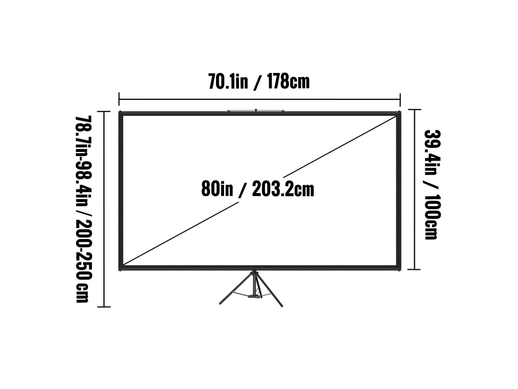 80" projekční plátno s trojnožkovým stativem a bezvráskovým povrchem je ideální volbou pro domácí kino, prezentace nebo venkovní použití. Podporuje rozlišení 4K HD, má široký pozorovací úhel 160° a výškově nastavitelný stojan. Lehká skládací konstrukce umožňuje snadné přenášení a rychlé sestavení bez použití nářadí.