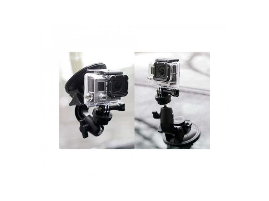 8) prísavný držiak na sklo - umožňuje pripevniť kameru na takmer akýkoľvek povrch (sklo, klzké povrchy, prilby atď.) 1/4'' závit a adaptér na montáž kamier GoPro
