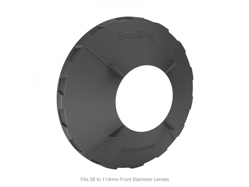 Silikónový "donut" SmallRig so 114 mm zadným otvorom pre Matte Box 3409 je špeciálne navrhnutý pre SmallRig Matte Box 2660 na zastavenie prenikania svetla. Podporuje objektívy s vonkajším priemerom od 58 mm do 114 mm bez nutnosti častej výmeny adaptérových krúžkov. Konkrétne sa táto vysoko flexibilná silikónová clona objektívu zacvakne priamo na prednú časť objektívu a potom sa zacvakne do matného boxu 2660 pomocou 114 mm kovového krúžku, zatiaľ čo na podopretie matného boxu a zabránenie jeho skrúteniu je potrebná prídavná tyč LWS Rod Support pre matný box 2663. Má štyri vonkajšie body na jednoduché nastavenie a zosilnené obloženie, ktoré zabraňuje vinetácii v dôsledku prepadnutia.