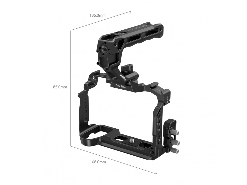 Súprava SmallRig Cage Kit pre Panasonic LUMIX S5 II / S5 IIX 4143 je určená na pomoc pri fotografovaní z ruky a pripevňovaní príslušenstva. Obsahuje klietku, svorku na káble HDMI a USB-C a hornú rukoväť, v ktorej sa horná rukoväť, ergonomicky navrhnutá na zlepšenie úchopu, pripája ku klietke pomocou svorky NATO a skrutkovacia svorka na káble môže súčasne upevniť káble HDMI a USB-C. Medzi montážnymi bodmi pre príslušenstvo sú otvory so závitom 1/4"-20 pre studenú päticu pre mikrofón, LED video svetlo, monitor atď. a uzamykacie otvory ARRI 3/8"-16 sú vhodné na montáž monitora. Na ľavej strane má tiež lištu NATO pre bočnú rukoväť 3847 a otvory na popruh na oboch stranách, ktoré sú kompatibilné s ručným popruhom. Okrem toho je súčasťou balenia magnetický kľúč na jednoduchú demontáž a montáž.