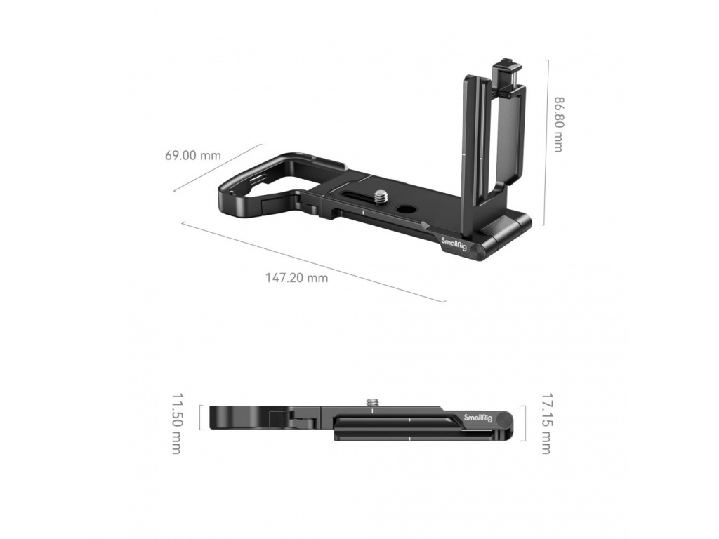 Skladacia montážna doska SmallRig v tvare L pre Sony Alpha 7R V / Alpha 7 IV / Alpha 7S III 3984 uľahčuje rýchle prepínanie medzi horizontálnym a vertikálnym snímaním pri zachovaní prístupu k výklopnému displeju LCD. Bočné strany Arca-Swiss sa rýchlo sklopia do spodnej časti pomocou sklopného tlačidla na horizontálne snímanie a uložia sa ako jeden prenosný kus príslušenstva a základná doska sa dá vysunúť na vertikálne snímanie, aby sa umožnil prístup ku káblu. Držiak L, ktorý sa uzamyká pomocou skrutky 1/4"-20 a montážnych kolíkov v spodnej časti, je vybavený vankúšikmi, ktoré zabraňujú poškriabaniu a skrúteniu, ako aj ramenom závesu na batérii, ktoré sa prispôsobuje zakriveniu fotoaparátu a zlepšuje komfort pri držaní. Základná doska je vybavená viacerými otvormi so závitom 1/4"-20 pre rameno Magic Arm 3873 a päticu Cold Shoe 2935 pre monitor, mikrofón a ďalšie príslušenstvo pri výrobe videa, otvorom pre zápästný popruh a konektorom QD na rýchle upevnenie ramenného popruhu QD a zápästného popruhu a skrutkovačom so štrbinou na montáž alebo demontáž.