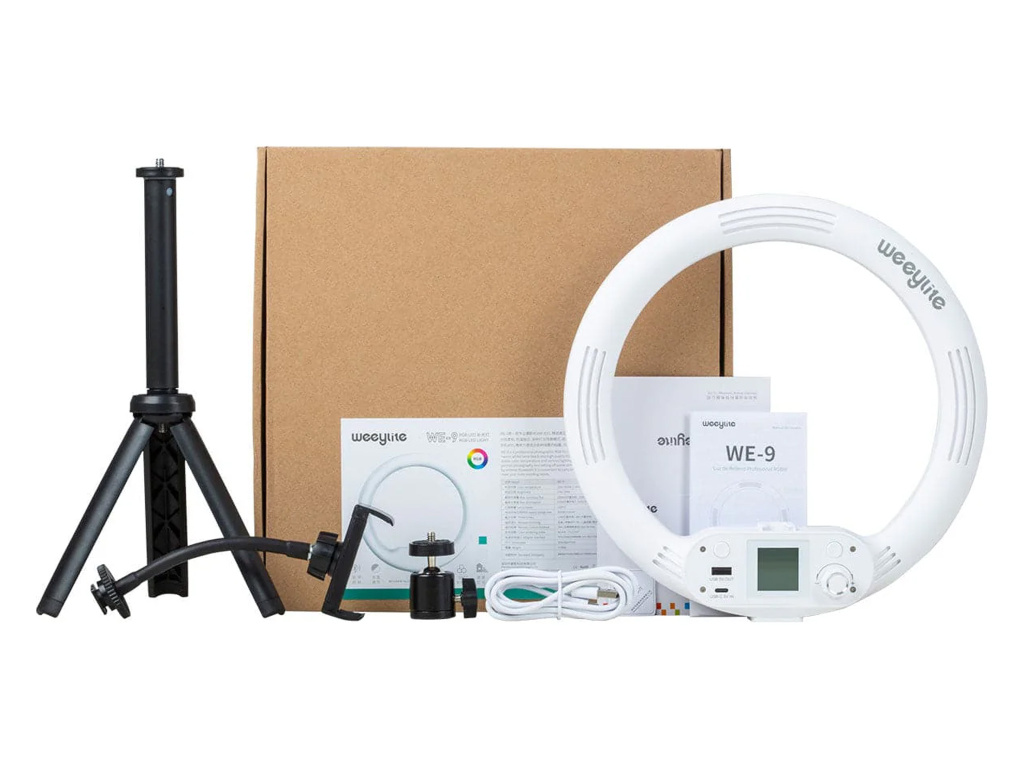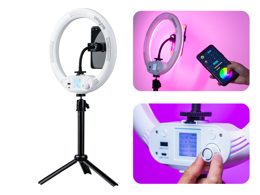 Weeylite WE-9 RGB farebné kruhové 10" ring light svetlo s batériou a tripodom