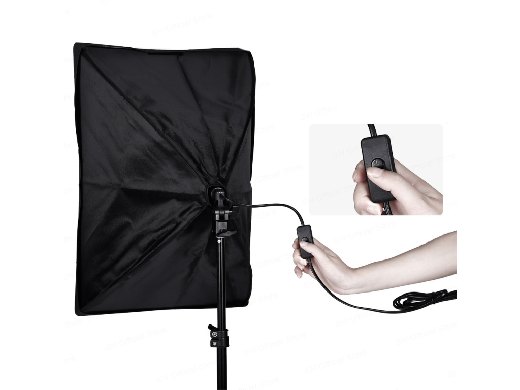Táto súprava troch softboxov je zaujímavá tým, že obsahuje tri rovné svetlá. Všetky obsahujú 2 metre dlhý statív, ale s priloženým "rameno výložníka" možno namontovať rameno na stropné osvetlenie. To je ideálne na rôzne kreatívne účely. Softbox obsahuje rozptylnú látku - to je veľmi dôležitá vlastnosť softboxov - mäkké svetlo. Softbox je ideálny na osvetľovanie výrobkov, starostlivosť o ľudskú pokožku. Keď tam softbox nebude (môžete si to vyskúšať sami odstránením difúznej vrstvy), uvidíte, že svetlo bude ostré a tiene veľmi jasné. To sa odráža na pokožke a nedokonalosti pokožky alebo povrchu výrobku sú viditeľné.