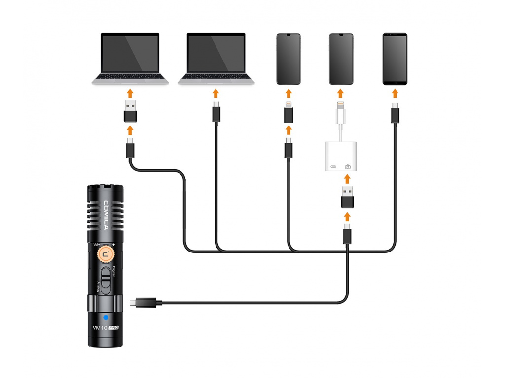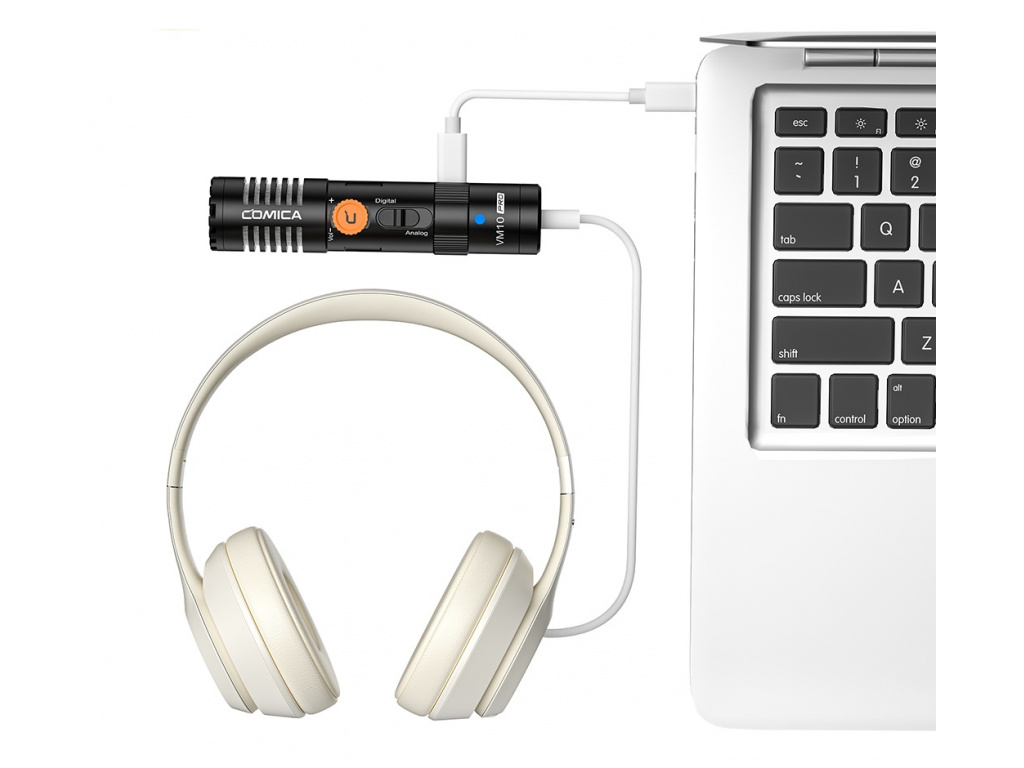 VM10 PRO bude ideálny aj pre používateľov smartfónov, ktorí nahrávajú svoj hlas na počítači a zároveň upravujú a dabujú svoje videá. Zariadenie má totiž teraz možnosť prepínať medzi analógovým (3,5 mm jack) a digitálnym (kábel USB-C) pripojením. Ide o mini smerový (kardioidný) mikrofón, ktorý bude jednoznačne lídrom nového radu mikrofónov Comica.