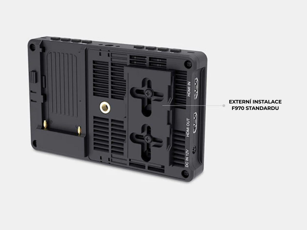 Model F5 ProX váži len 245 g a využíva skrutky 1/4-20 na hornej, dolnej a pravej strane na jednoduché upevnenie klietky, adaptéra a otočného ramena. Na zadnej strane monitora sa nachádza zásobník batérií F970 a inštalačný/napájací slot, pričom tento inštalačný/napájací slot môže napájať a inštalovať externé zariadenia, ako je bezdrôtový vysielač, svetlo LED a iné zariadenia, ktoré sú vybavené zásobníkom batérií Sony F970. Vďaka kompatibilite s väčšinou kamier a zariadení s rozhraním HDMI je kamera F5 ProX dokonalým spoločníkom pre filmárov, ktorí sú neustále na cestách. |