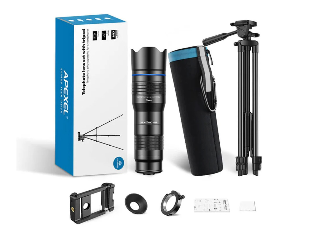 Apexel smartphone zoom objektív (zoom 20x – 40x) so statívom