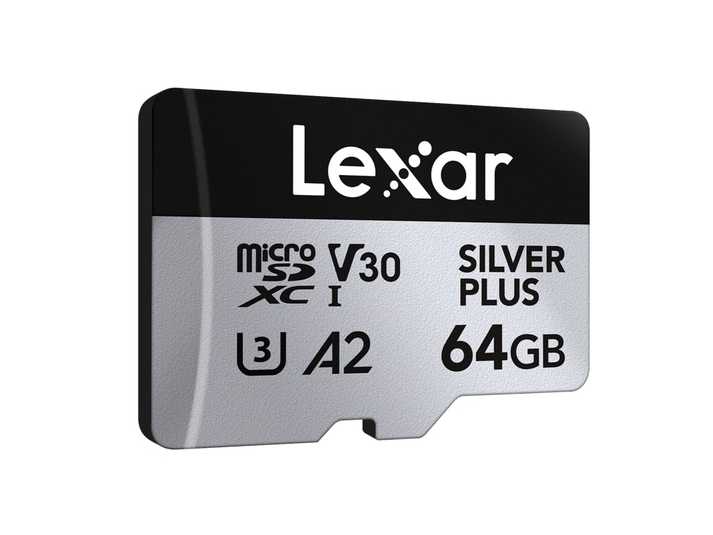 Paměťová karta Lexar Professional SILVER PLUS microSDXC 64GB nabízí vysokou rychlost čtení až 205 MB/s a zápisu 100 MB/s. Ideální pro drony, akční kamery, konzole a záznam 4K videa s plynulým přenosem dat.
