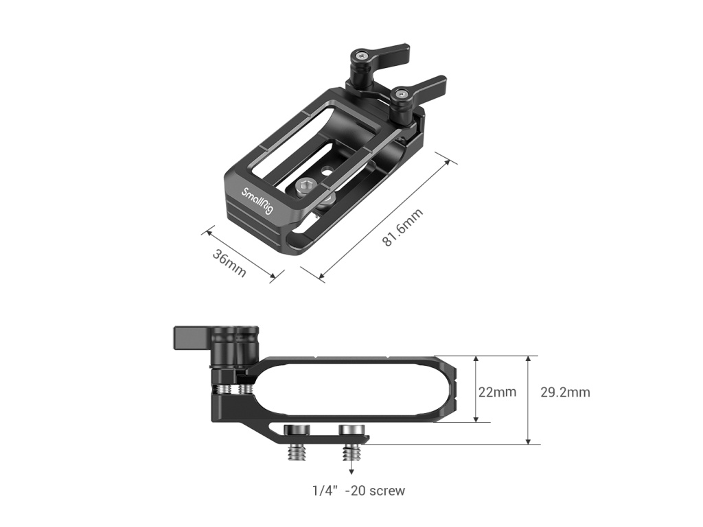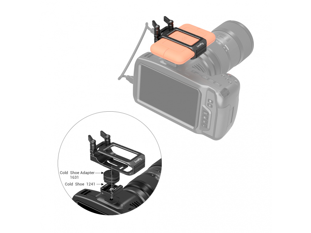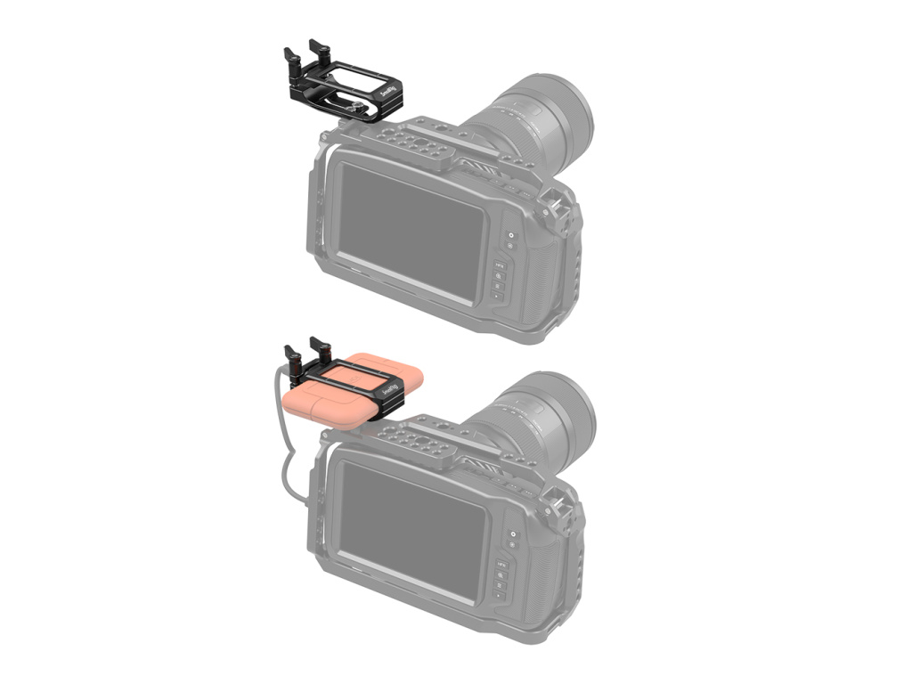 Držiak SmallRig Mount pre LaCie Rugged SSD 2814 umožňuje pripojiť SSD k vybraným kamerovým súpravám, ako sú klietky pre BMPCC 4K/6K, Sigma FP a Z CAM. Posunutá konzola v ľavom hornom rohu klietky pomáha lepšej kompatibilite s pridanou hornou rukoväťou, bočnou rukoväťou alebo iným príslušenstvom.