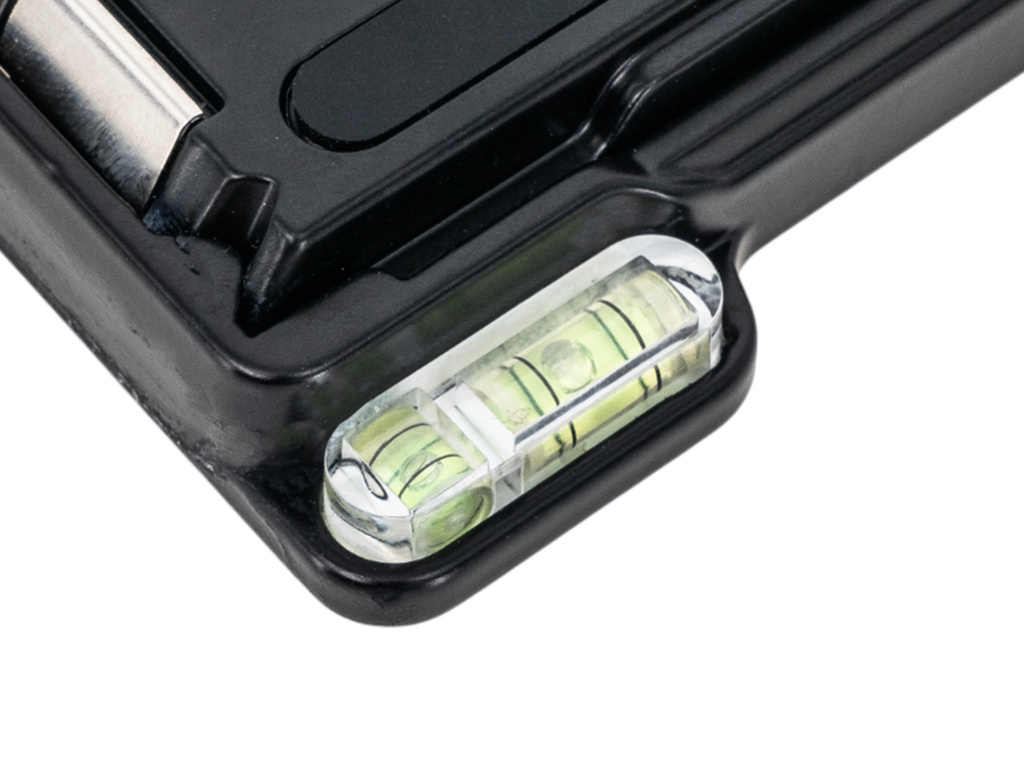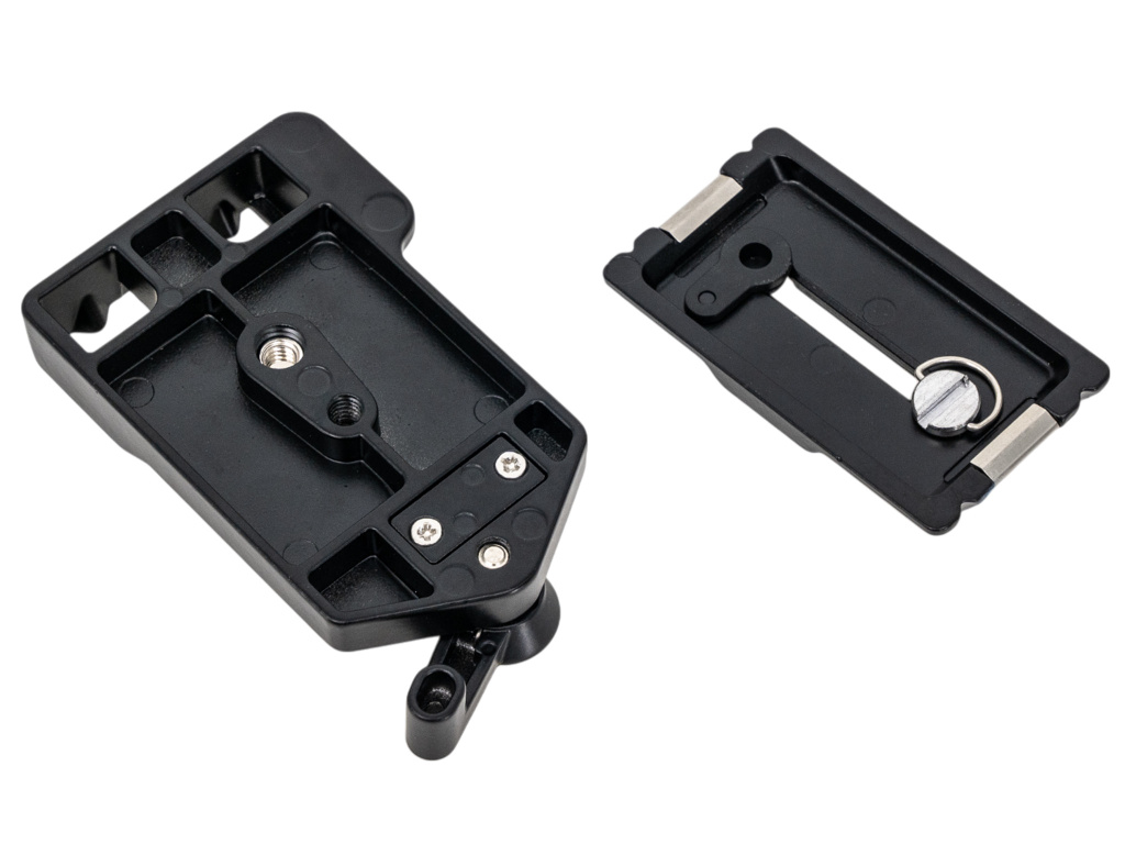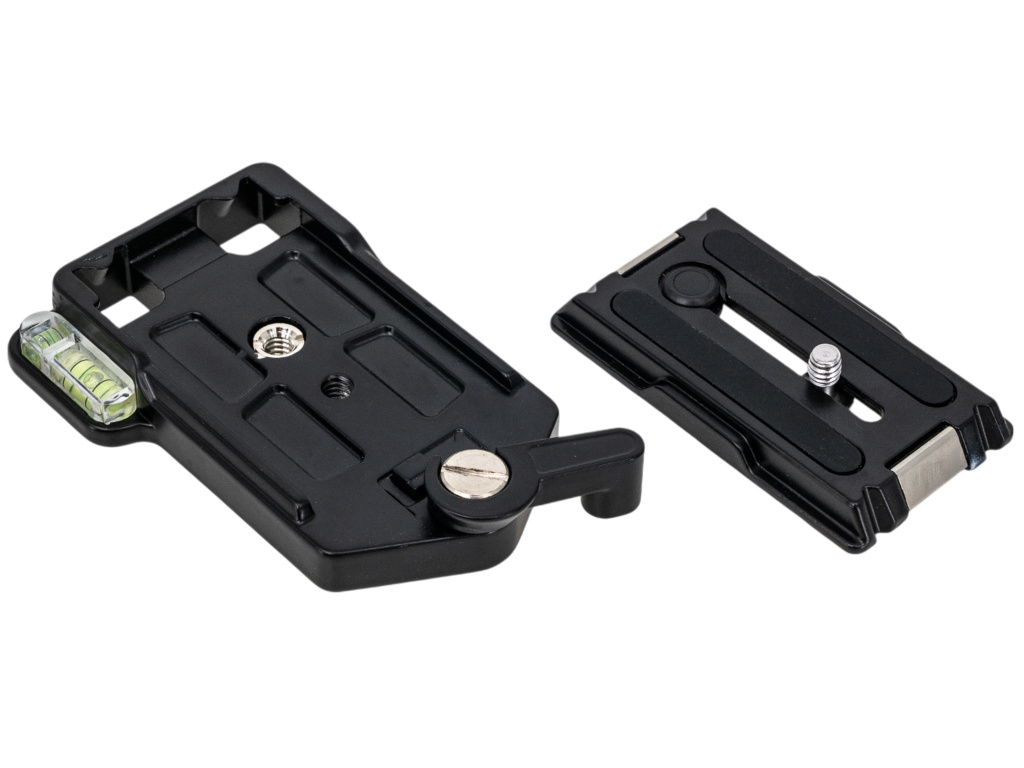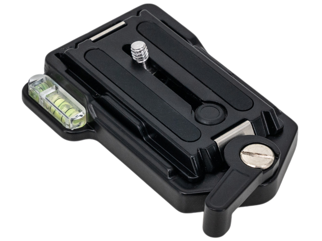 Precízne spracovaný rýchloupínací adaptér, vyrobený z odolnej hliníkovej zliatiny, ktorý kombinuje rýchloupínaciu doštičku a základňu. Vďaka vstavanej vodováhe je možné jednoducho kontrolovať vodorovné nastavenie, zatiaľ čo diagonálne zasúvanie doštičky s fotoaparátom do pevného rámu zaisťuje rýchlu a bezpečnú montáž. Inovatívna „variabilná smerová opora“ zabraňuje nakláňaniu fotoaparátu dopredu a poloautomatické upevnenie umožňuje stabilné uchytenie. Adaptér je vybavený štandardným 1/4" závitom, čo zaisťuje širokú kompatibilitu so statívmi, monopodmi, DSLR fotoaparátmi a videokamerami.