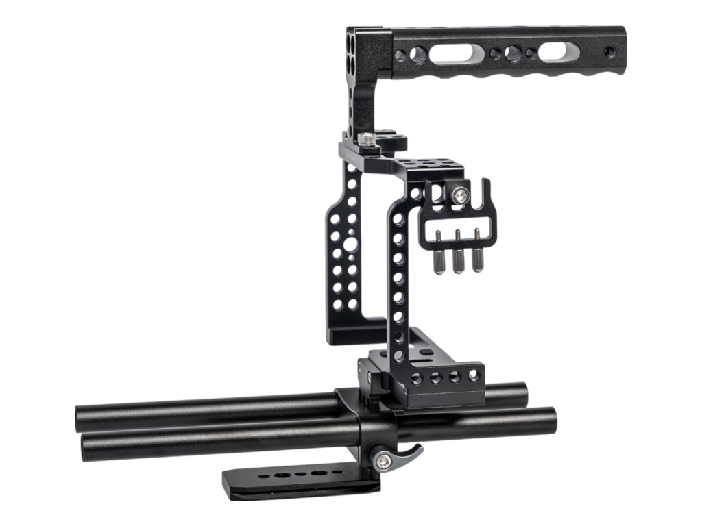Táto klietka - kamerový rig sa dá použiť s akoukoľvek kamerou, ktorá je telom podobná kamerám Panasonic GH5, prípadne Sony A7 III.
