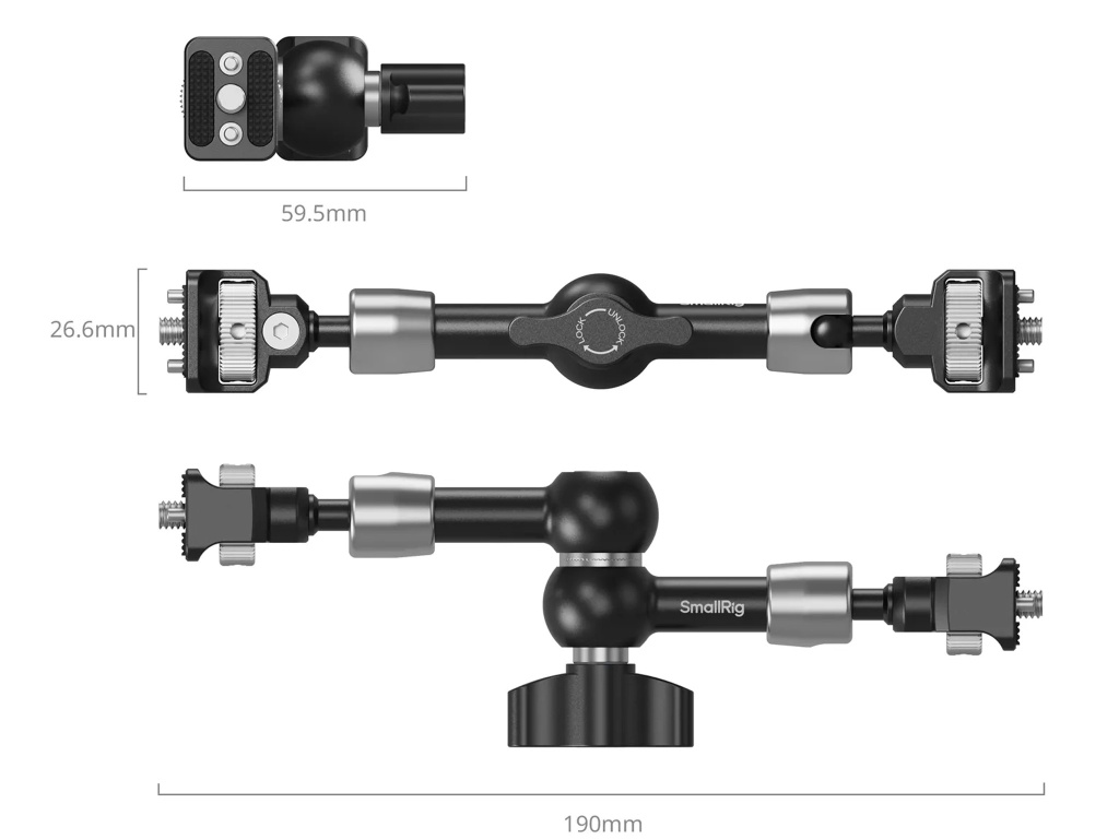 7" kĺbové rameno "Magic Arm" sa používa na pripevnenie svetiel, externých displejov a iného príslušenstva k digitálnej zrkadlovke na bajonet "hot shoe"