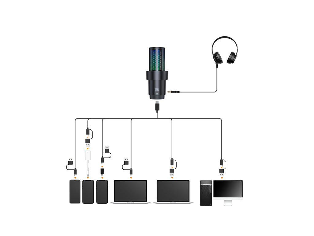 Digitálny výstup USB poskytuje nedotknuteľnú kvalitu zvuku, vysoko obnovuje pôvodný zvuk; nie je potrebné inštalovať ovládače, zložité sa mení na jednoduché. Je široko kompatibilný s počítačom a smartfónom - Jedinečný polstrovaný držiak a kovový pop filter
