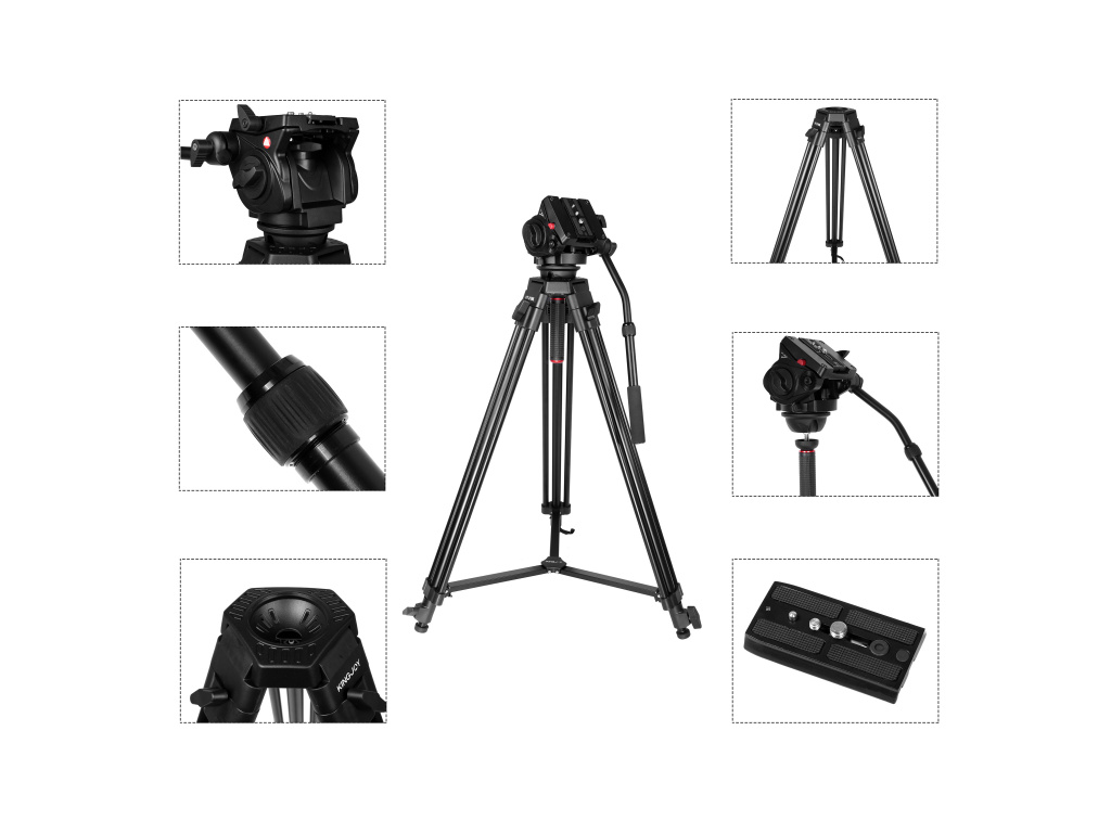 Tekutá videohlava VT-3530 je jednou z najlepších videohláv na našich webových stránkach. Všetky statívy s hlavou 3530 patrili aj medzi najdrahšie statívy Kingjoy. Nová séria statívov (2018) prináša tento nový statív s pracovnou výškou 193 cm, ktorý je úplne ideálny pre tých, ktorí sa venujú kvalitnej videohlave a nepotrebujú príliš vysokú nosnosť. Hlava je odnímateľná ako pri ostatných statívoch KingJoy a možno ju použiť na iné účely (slider, žeriav atď.). Hlava sa odstraňuje pomocou imbusového kľúča na spodnej strane hlavy, celý proces trvá približne 2 minúty.