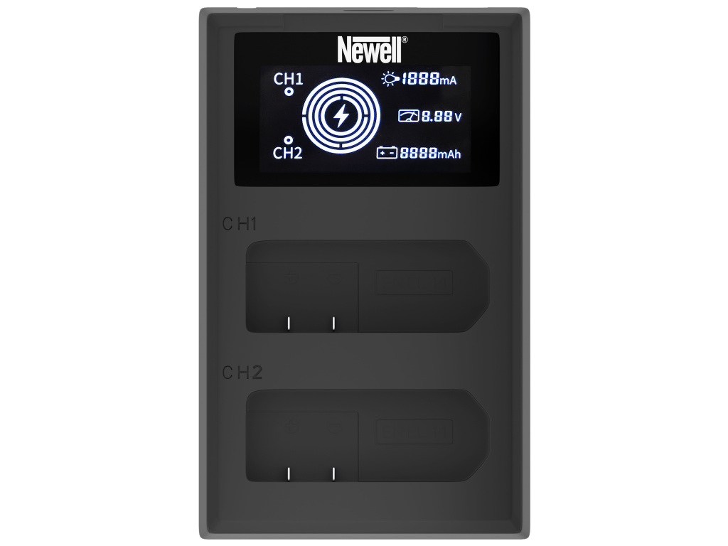 Vďaka možnosti nabíjať dve batérie súčasne je to ešte pohodlnejšie a bezpečnejšie v prípade neočakávaného výpadku napájania fotoaparátu V prípade oboch dostupných kanálov môžeme počítať s rýchlosťou nabíjania maximálne 1000 mA