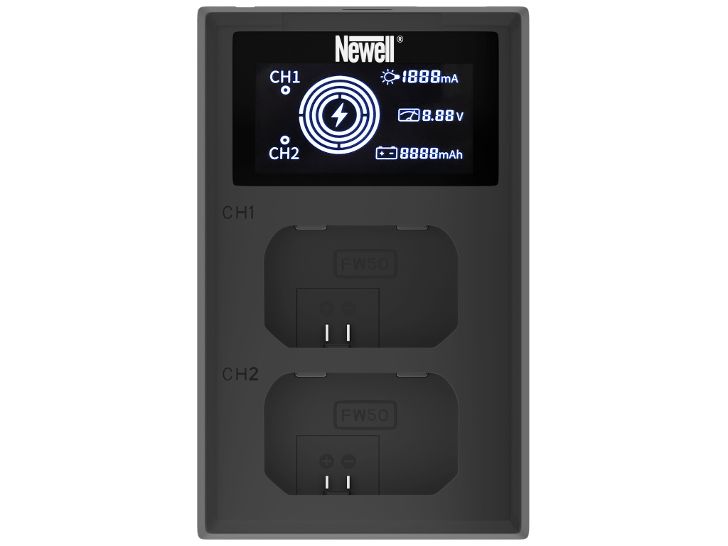 Vďaka možnosti nabíjať dve batérie súčasne je nabíjanie ešte pohodlnejšie a bezpečnejšie v prípade neočakávaného výpadku napájania fotoaparátu. V prípade oboch dostupných kanálov môžeme počítať s rýchlosťou nabíjania maximálne 1000 mA.