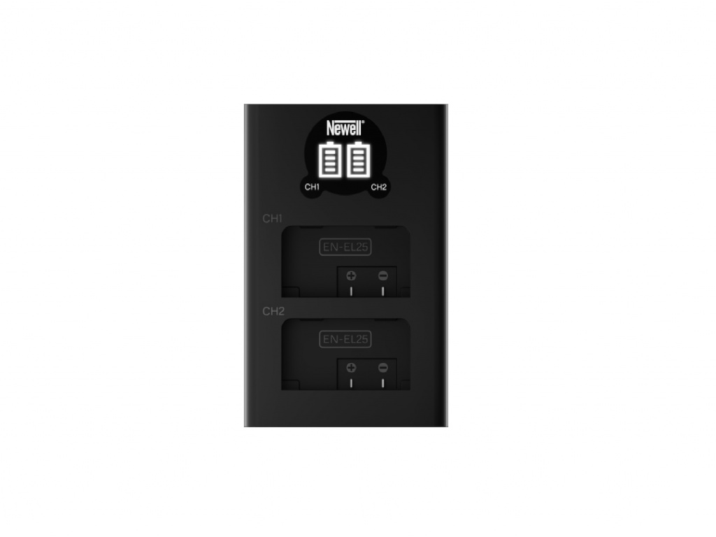 Efektívna práca s kamerou si vyžaduje primeranú prípravu a efektívnu optimalizáciu času. Nabíjačka Newell DL-USB-C vám v tom pomôže. Možnosť nabíjať 2 batérie EN-EL25 súčasne predstavuje novú úroveň pohodlia a praktickosti. Lepšie vás ochráni v prípade neočakávaného výpadku napájania fotoaparátu. Pri nabíjaní jednej batérie môžete počítať s maximálnym prúdom 700 mA. Ak sú obsadené obe komory, bude hodnota 500 mA.