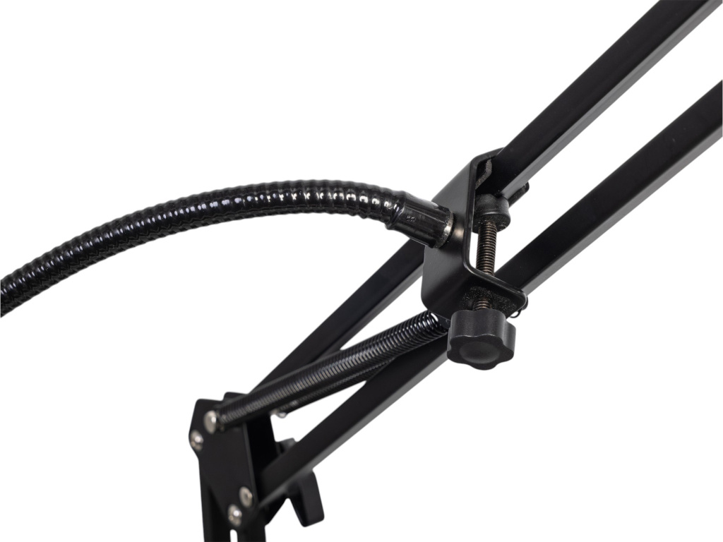 Rameno na upevnenie mikrofónu so systémom pántov a rýchloupínacou páčkou na inštaláciu stojana na dosku stola.