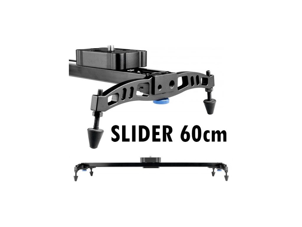 Kamerový slider FT-GLX 60 cm je slider, který si může koupit i kdejaký profesionální kameraman. Slider překvapuje, dokonce až odpuzuje svojí nízkou cenou. Slidery v této cenové relaci s kovovým ložiskovým pojezdem totiž nejsou moc "funkční", neboť pojezd se často zadrhává, pohyb není plynulý a často jsou to pouze vyhozené peníze.