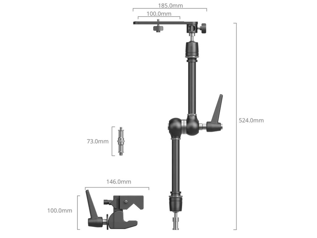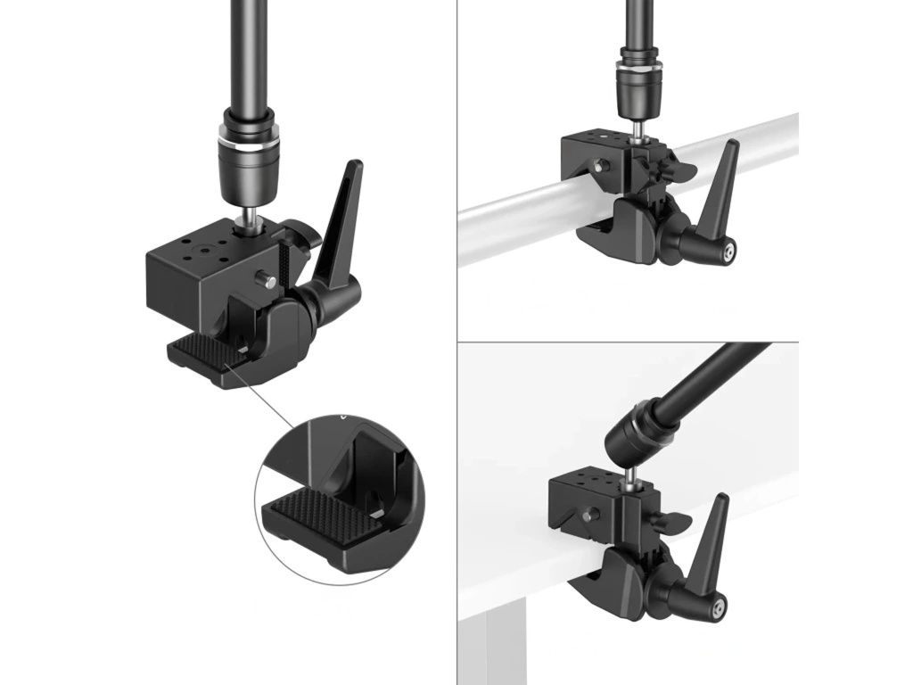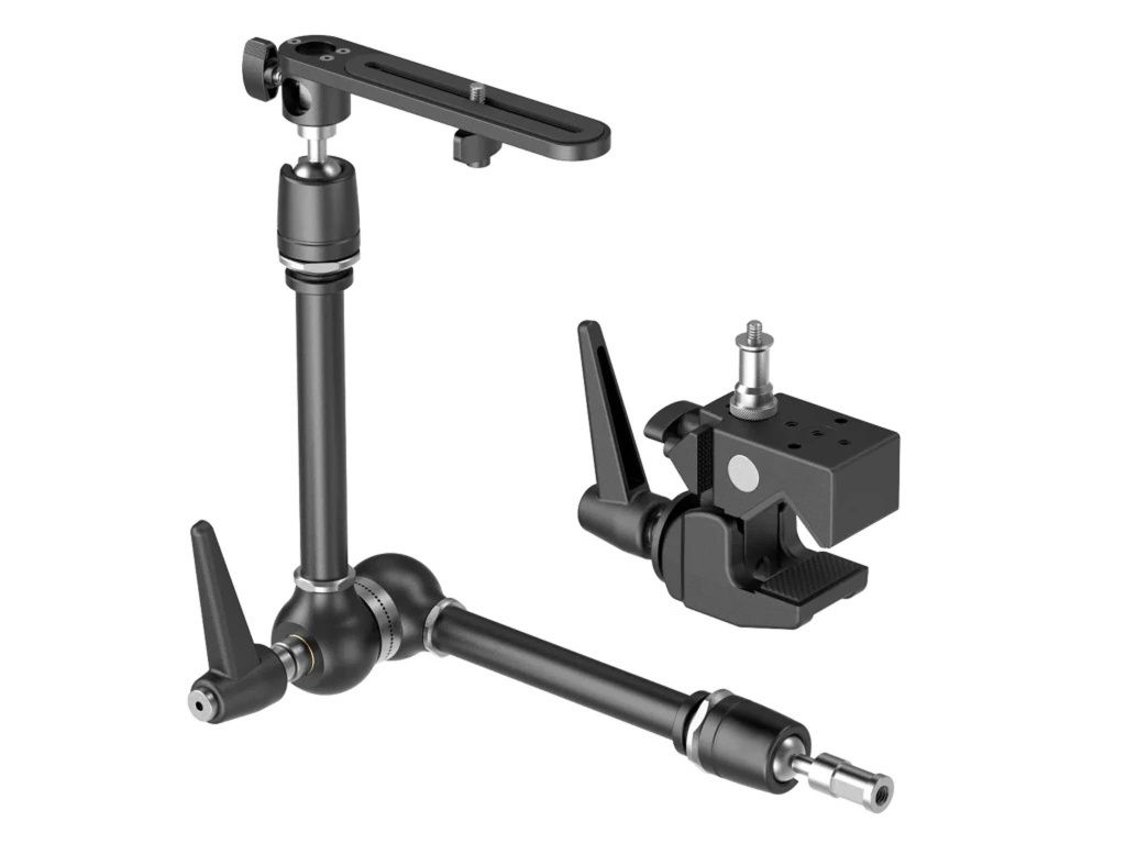 Sada Super Clamp s Magic Arm ramenem nabízí ideální řešení pro uživatele kompaktních zařízení, jako jsou smartphony, webové kamery a akční kamery. Sada obsahuje nastavitelné rameno Magic Arm, super svorku a adaptér se závitem 1/4"-20 na 3/8"-16. Magické rameno o délce 524 mm (20,6 palce) se bezpečně připevňuje k super svorkě pomocí horního šroubu 1/4"-20 s ochranou proti otočení.
