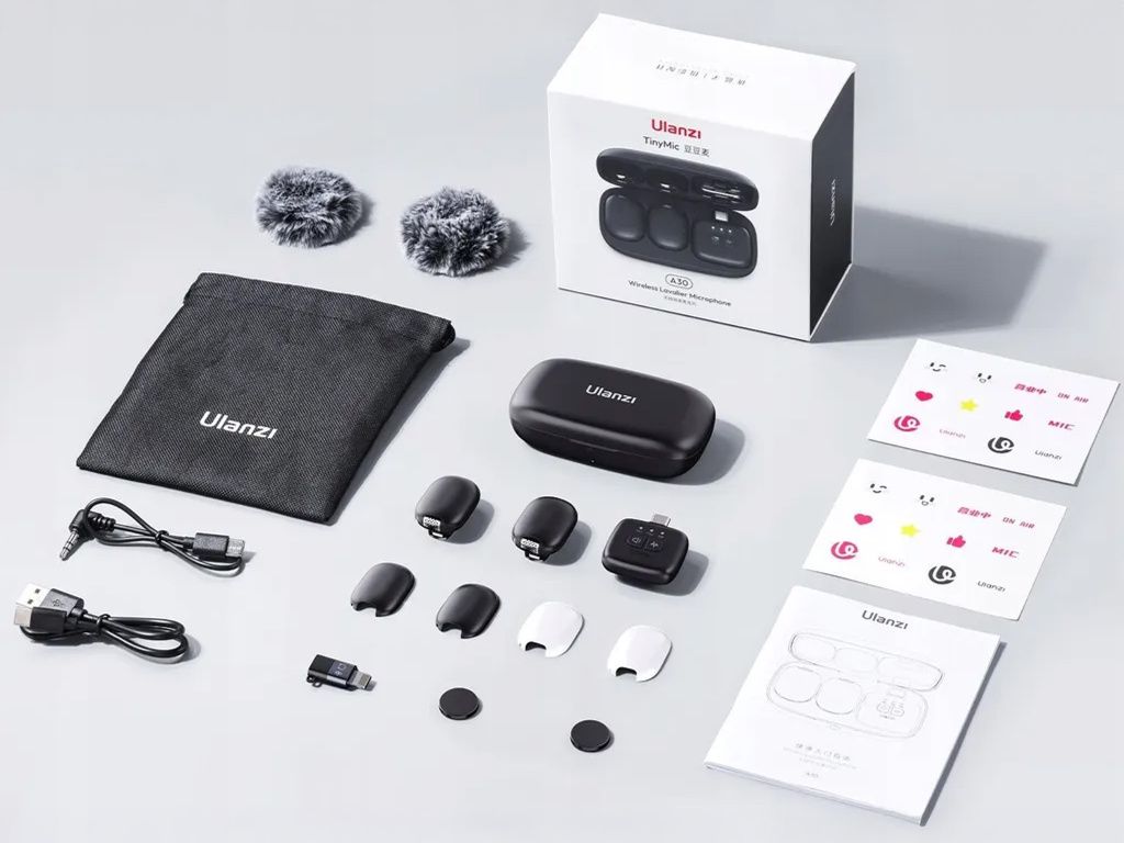 Ulanzi A30 2,4G bezdrátové klopové mikrofony pro smartphone a tablety (USB-C/Lightning/Jack 3.5mm)