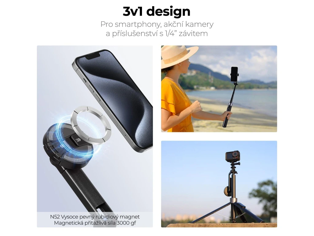 KF Concept MS-52 3v1 MagSafe mini stativ s dálkovou spouští pro smartphony a akční kamery KF15.0015