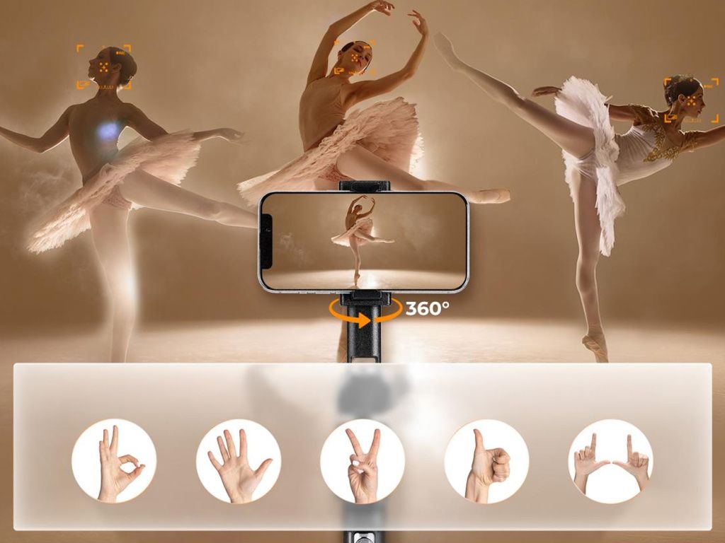 Tento stabilizátor s funkcí sledování obličeje s umělou inteligencí vás automaticky sleduje bez potřeby aplikace, což zjednodušuje jeho používání. Podporuje ovládání gesty pro...