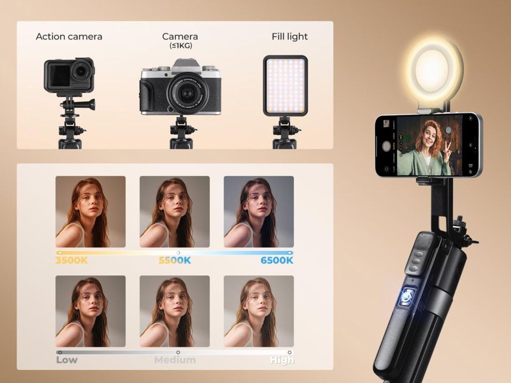 KF Concept stativ s LED světly a AI automatickým sledování obličeje pro smartphone, akční kamery, fotoaparáty KF15.0006
