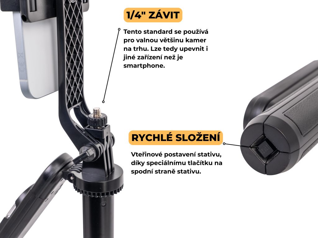 Lensbot ST-520 je všestranný 3v1 stativ, selfie tyč a držák na smartphone, navržený pro tvůrce, kteří chtějí lehké, skladné a přitom stabilní řešení pro každý typ natáčení.