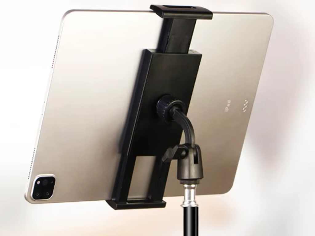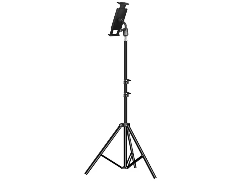 Nastavitelný stativ pro tablety je ideálním řešením pro ty, kteří potřebují pevné a stabilní uchycení svého zařízení. Díky univerzální svorce s rozsahem 15–25 cm pojme tablety o velikosti 4" až 13", čímž se stává vhodným nástrojem pro široké spektrum zařízení. Stativ umožňuje nastavení výšky od 55 do 160 cm, což poskytuje maximální flexibilitu při používání – ať už při práci na dálku, streamování videí, čtení not nebo prezentacích. Jeho pevná základna zajišťuje stabilitu i při maximální výšce, což ocení jak profesionálové, tak běžní uživatelé. Robustní konstrukce je navržena tak, aby odolala každodennímu používání a poskytovala dlouhou životnost.