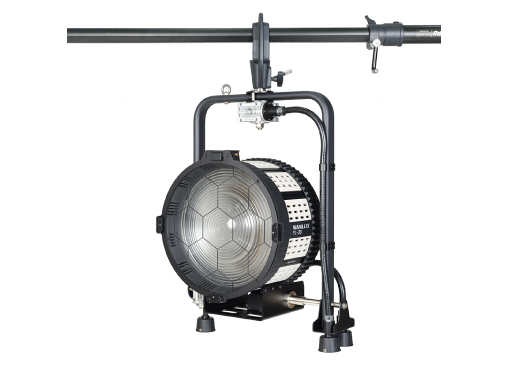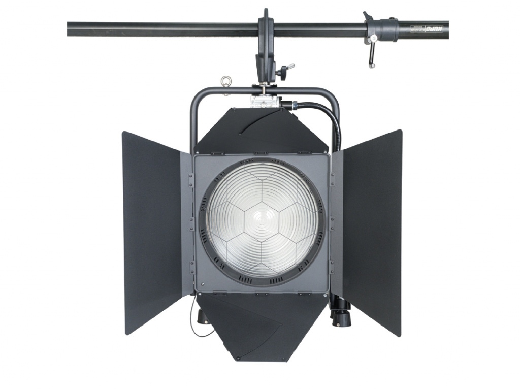 Navrženo na míru pro světlo Evoke 1200/1200B, včetně 3 ovládacích knoflíků pro zaostřování a nastavení otáčení/náklonu. Otáčení a náklon se nastavuje tak, že se zespodu dlouhou tyčí zasunou barevně označené košíčky třmenu. Dodaná skleněná Fresnelova čočka se 4dílnými klapkami se montuje na třmen.