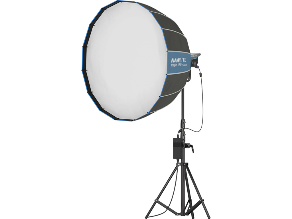 Parabolický softbox Nanlite Rapid 120 poskytuje vynikající měkké osvětlení pro větší sestavy. S průměrem 120 cm je určen pro profesionály, kteří potřebují rozsáhlé a kontrolované osvětlení pro práci ve studiu a na místě.