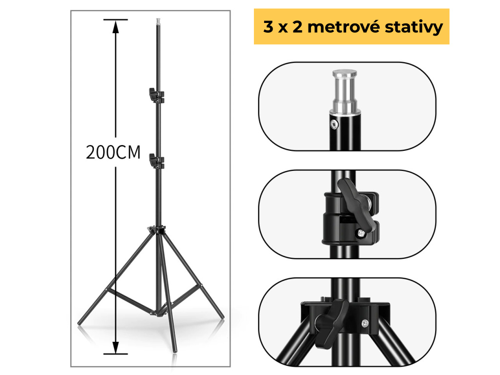 Max. výška stativů: | 2 m (nosnost 3 kg) |